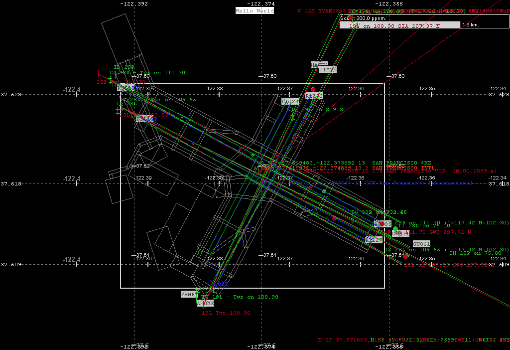 This is a relatively calm view of KSFO using all three sets of data, and same world coords-to-pixel (maybe bad!) math for allignment.