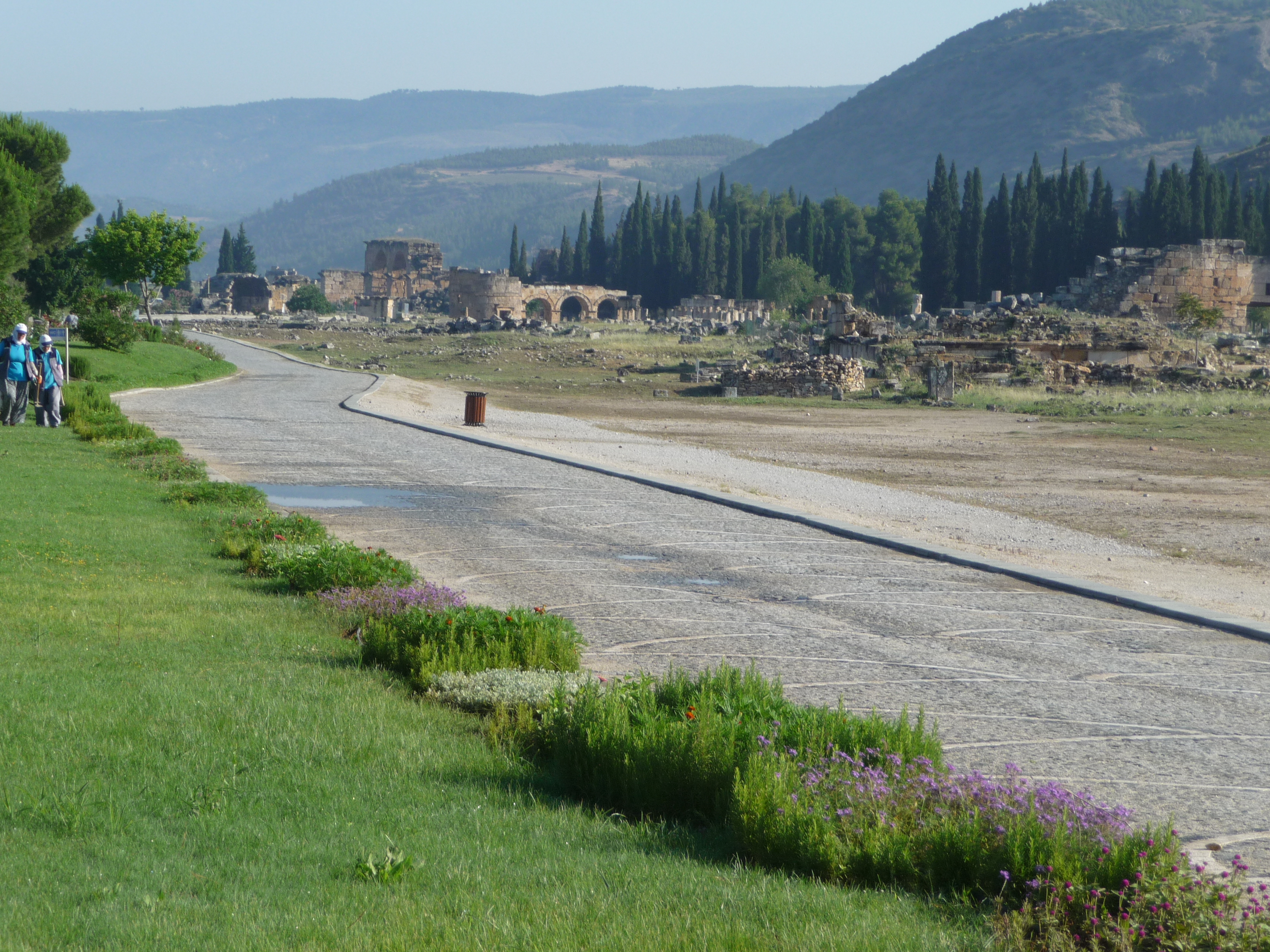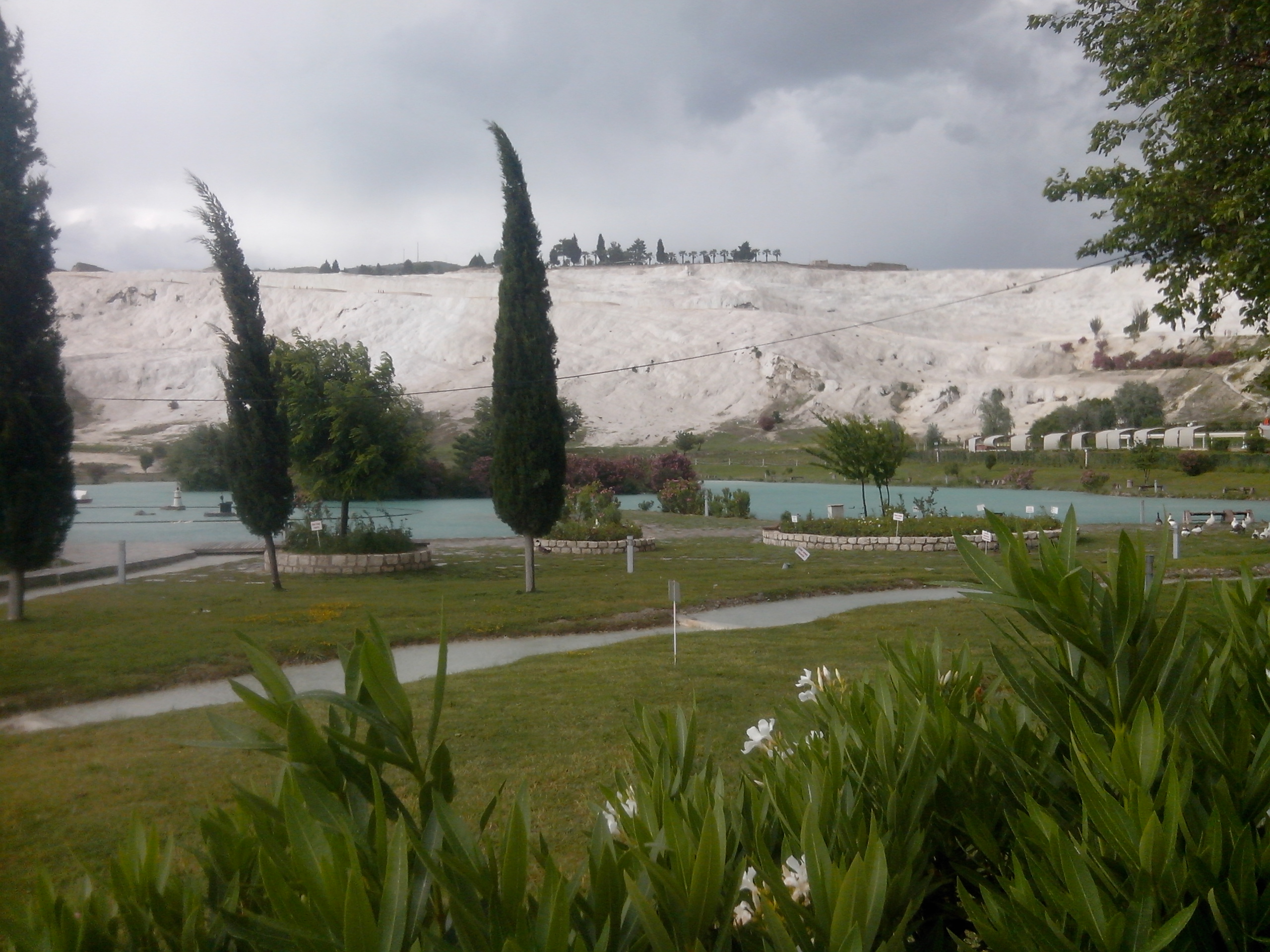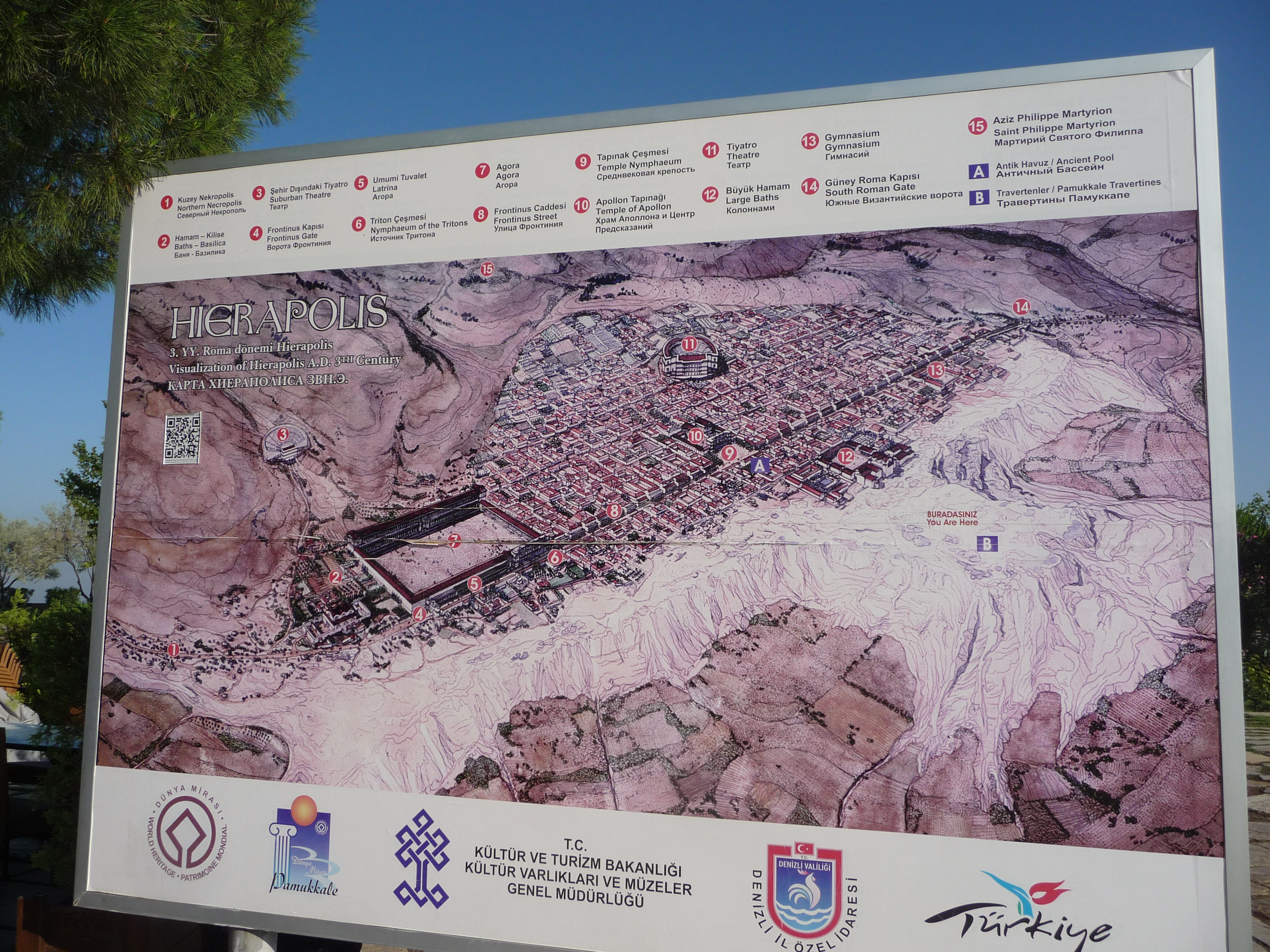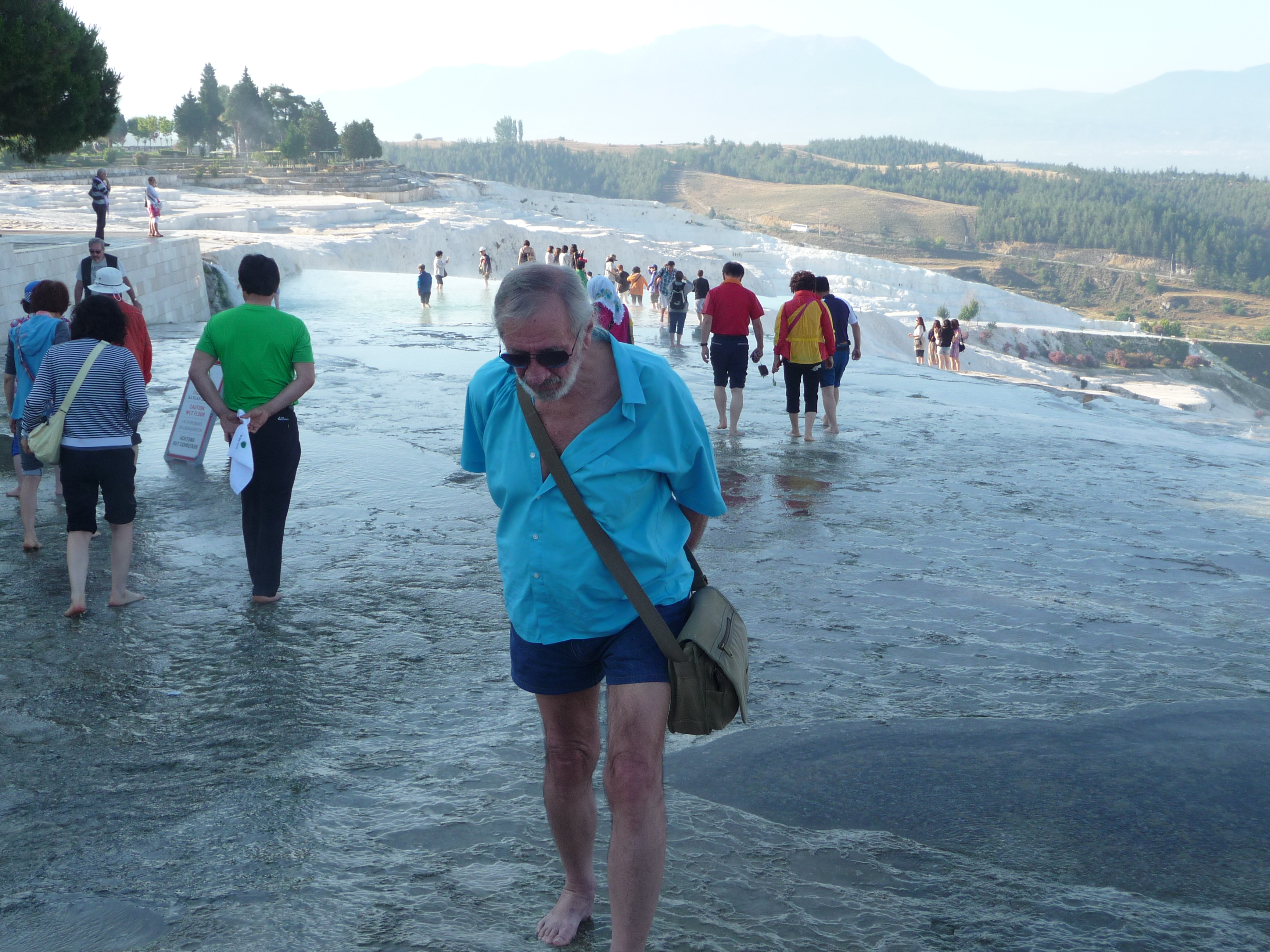 A brief picture stop, [2], before arriving at the hot springs at Pamukkale. Me paddling in the warn water. And on the hillside the ruins Roman village of Hierapolis, now nicely landscaped for the tourist trade. I read on wikipedia that tourism contributes over 10% of the Turkish GDP.