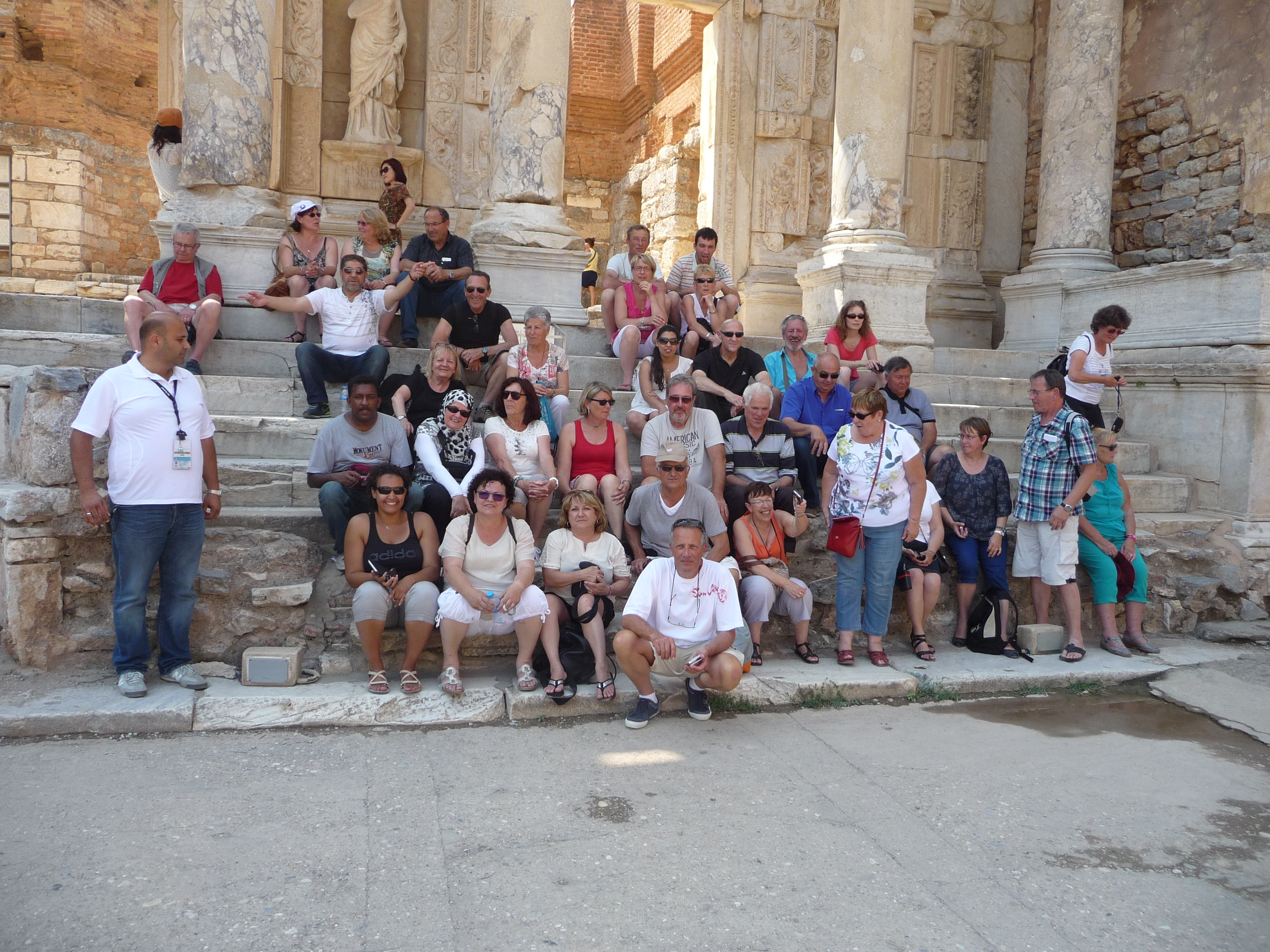 After lunch was the big visit to ruins of Ephese. This was a few kilometre walk through the ruins. This is a nice picture of our group taking a small repose.
