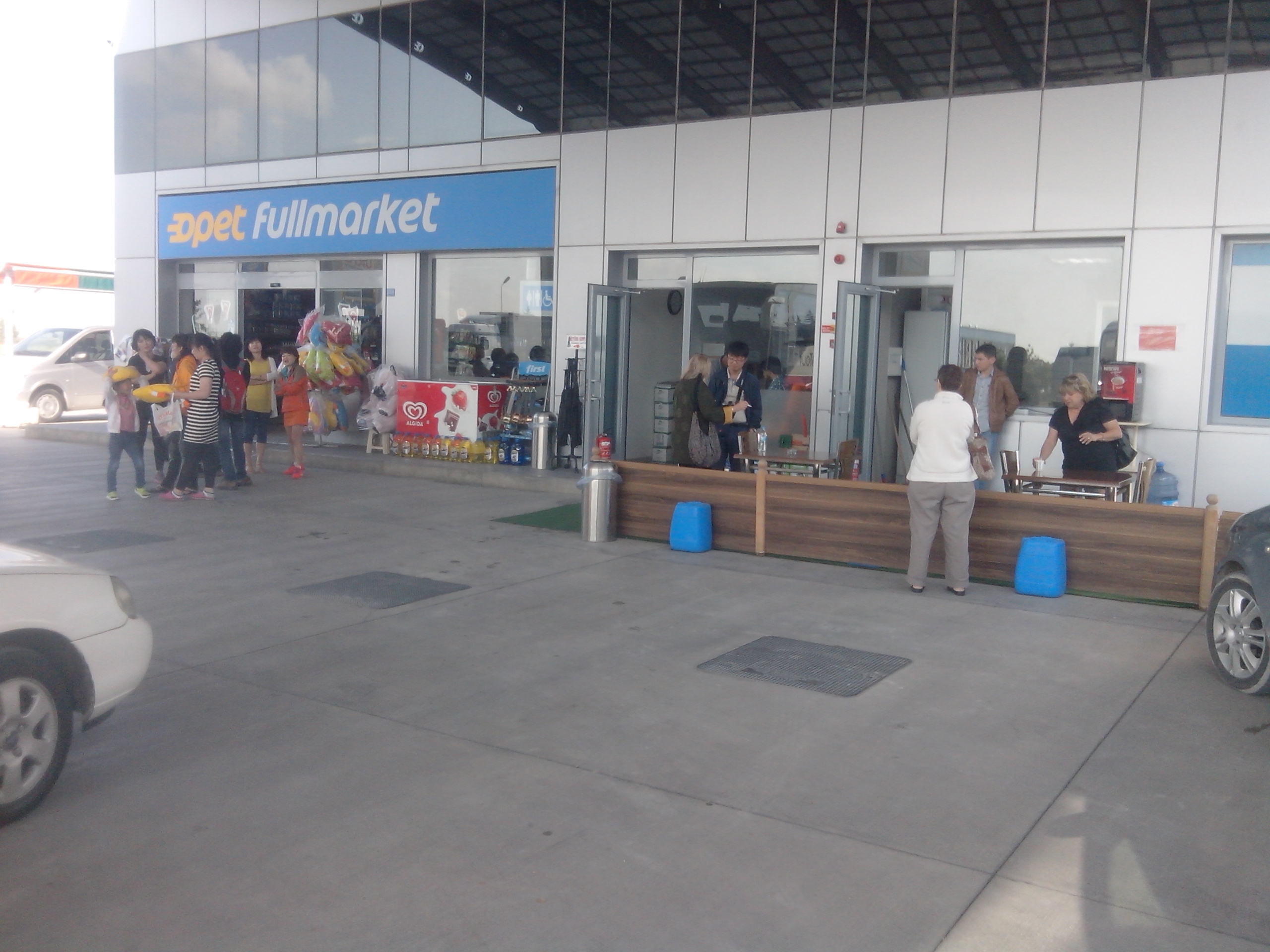 A stop for lunch, and the inevitable smokers brigade. This group, including myself were almost always last back to the bus.